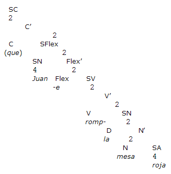 El siguiente esquema, llamado esquema T o Y, da cuenta del modo en que se concibe la derivación de una oración en Principios y Parámetros, con los correspondientes niveles sintácticos: