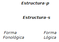 Como se observa, el modelo de Principios y Parámetros reconoce cuatro niveles distintos en la derivación de una oración. Dos de esos niveles son exclusivamente sintácticos: la estructura profunda, que se deriva en buena parte de los requerimientos de los ítems léxicos (particularmente de los requerimientos argumentales de los verbos), y la estructura superficial, que se obtiene luego de efectuadas las operaciones sintácticas. A partir de allí, la derivación de la oración “se abre” en dos ramas distintas, invisibles entre sí: a partir de la estructura superficial se determinará por un lado la forma fonológica de la oración y por el otro su forma lógica (o semántica).