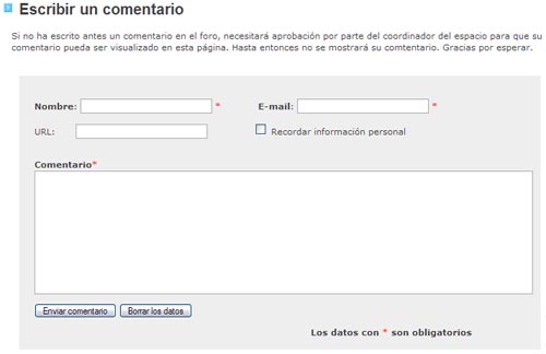 Para participar del foro hay que colocar los datos solicitados y escribir el mensaje en la ventana que dice Comentario.