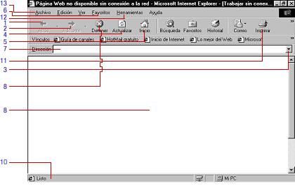El siguiente gráfico muestra las partes y funciones básicas para manejar un navegador: