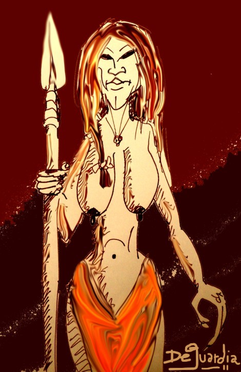 eidad wichi femenina, difundida en la región noreste de la Argentina y creada por Nilatej El Supremo; reina sobre la región subterránea, rigiendo con mano despótica su malévola hueste de potencias nefastas para el hombre, los Ajat. Estos últimos son espíritus malignos, creados especialmente por la diosa para que le sirvan de esclavos. Ajataj, por medio de sus Ajat, domina a los shamanes, a quienes puede otorgar o quitar sus poderes a voluntad; también es la que desencadena y detiene plagas y enfermedades, y su poder se extiende al mundo subacuático de ríos y arroyos. Su forma humana, cuando la adopta, es la de una mujer desnuda, de grandes pechos caídos y largos cabellos negros, descuidadamente trenzados." (*)
