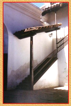 En el primer patio algunos de los muros alcanzan los 2,25 de ancho, por lo que, al caminar por la galería corrida del primer piso, se camina sobre el ancho de la pared inferior. Las barandas y zapatas han sido realizados en quebracho colorado. Los techos son a dos aguas cubiertos por tejas musleras realizadas en forma artesanal por los indígenas