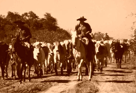 Junto al fogón los gauchos vigilaban contando casos y cuentos, y de rato en rato hacían una recorrida. Por las mañanas, al alba, entre los mugidos del ganado se reiniciaba el camino interminable, hasta que se salía por la zona de Metán al camino abierto, polvoriento y  ancho, que mostraba la cercanía de la meta. Se vendía el ganado y el patrón hacía efectiva la paga convenida en el bar más importante del pueblo.