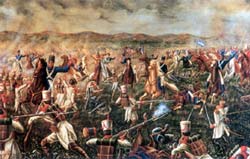 Ya me habia situado en él y conocida la marcha del enemigo puse el Exto, á su frente, y observando sus maniobras, y disposiciones para formarse, antes qne pudiera verificarlo, mandé desplegar en vatalla mis divisiones y q. atacase la Infantería á la vayoneta, y abanzase la Cavallería q. cuvria mis álas, reforzando con parte de la division de reserva la del ala derecha.