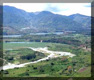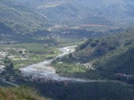 La ruta cruza el río Calchaquí y lo deja bien abajo, lamiendo los pies de los cerros.