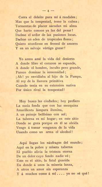 Su texto más comentado es una confesión lírica que Castellanos titula El Borracho y que aparece en 1887. El poema, impreso por primera vez en Salta en 1951, está diseñado en base a los clásicos postulados realistas-naturalistas, hasta entonces patrimonio exclusivo de la novela.