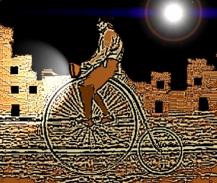 Con respecto a la historia de la bicicleta en Salta tuvo su comienzo en 1891, con una mezcla de terror y risa. Su protagonista era un relojero que la gran parte del día se lo pasaba encerrado en su taller ubicado frente a la plaza 9 de Julio, por Caseros. Me estoy refiriendo al "gringo" Antonio Ravizza quien de noche acostumbraba, tras la jornada cotidiana, salir a dar unas vueltas por las oscuras calles de nuestra colonial ciudad. No deambulaba ni a pie ni a caballo, sino montado en su diabólico y rústico "velocípedo" que se componía de dos ruedas, una grande adelante y otra pequeñísima atrás. Estaba provisto de un farol desproporcionado que iluminaba con un mechero a kerosén, por cierto, no mantenía quieta la luminaria al atravesar por las calles desparejas, pero sí saltarina.
