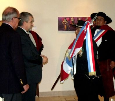 Presentándose la bandera de la Identidad Criolla, de manos del Sr. Delegado Carlos Oropeza, se da apertura al V Encuentro Nacional Folklore y 2do. Congreso Internacional del Patrimonio Cultural - Salta 2014. La enseña del COFFAR simboliza la historia sincrética de nuestro pueblo.
