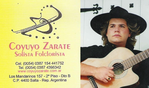 - En junio del año 2007 viajo a EUROPA llevando su música bien carpera representando ARGENTINA y su hermosa SALTA recorriendo entre otros: ALICANTE, VALENCIA, BARCELONA, MADRID, CASTELLON, MURCIA, ALMERIA, TOLEDO, TARRAGONA, IBIZA, MALLORCA, ETC….