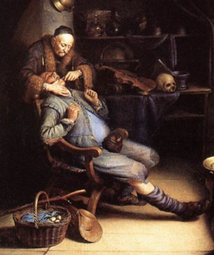 Hubo casos de personas aisladas del mundo exterior por varios meses, presa del intenso dolor y sufrimiento, que no apelaba a las rústicas curaciones por un lógico terror a estas prácticas cruentas y dolorosas. Todo fue así, hasta que llegó un dentista con toda la barba. Dicen que era italiano y que sacaba muelas a domicilio y muchas veces sobre las aceras.
