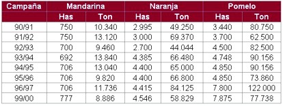 de pomelo, pasando de 3.440 has en 1990 a 7.785 has en 1999.
