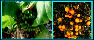 chirimoya, cítricos (naranja y limón), papaya, hortalizas