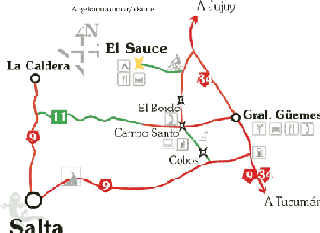 Se accede por la ruta 9 desde capital y luego se empalma la ruta 34 (camino a Jujuy) o se dobla por Cobos en forma mas directa. Por Cobos, uno recorre los pueblos, pasa por Campo Santo y llega hasta El Bordo.