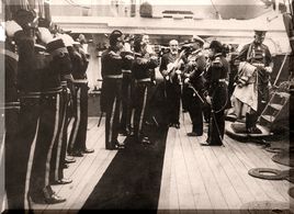 El Kaiser Alemás Guillermo II visita la Fragata Sarmiento que había arribado al puerto de Kiel - Alemania 1902/1903. |