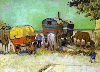 Las carretas llegaban bamboleándose en el largo camino, castigados por el sol inclemente, y alguna madrugada, luego de una larga permanencia, el rosicler de una madrugada mostraba formas difusas todavía, de las carretas lentas y pesadas, avanzando por el camino, bordeado de altos yuyos y de viejos árboles. Los años fueron pasando y las cosas cambiaron. Los gitanos llegan hora en caravanas de automóviles y camiones y se dedican a la compra venta de automotores. Lo hacen en cualquier lugar y en cualquier momento, exhibiendo fajos de tentadores billetes para cerrar el trato al contado inmediato. Las gitanas son más audaces y prácticamente exigen a sus clientes, a quienes predicen la buenaventura, pero ahora pidiendo "un palo" por adelantado. También sus visitas a la policía son permanentes, pero ya no exhiben sus enseres hechos de cobre. Mantienen si el atuendo típico, conocido en todo el mundo, por donde se desplazan con sus carpas circulares, sus aros y abalorios, y las exóticas costumbres y creencias que les llegan desde la lejanía de los tiempos bíblicos, con su historia deformada de faraones y princesas encantadas. Fuente: "Crónica del Noa" - 28/02/1982