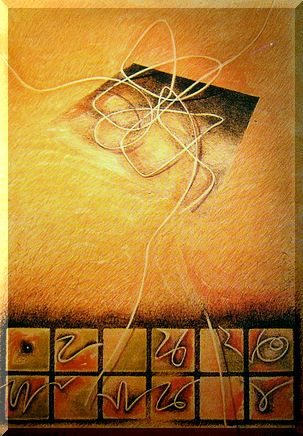 Las formas geométricas, la ecuanimidad de la luz y el ajustado manejo del color prevalecen en estos claros mudos propuestos por la artista. En ellos la idealidad establecida por el equilibrio, la claridad y la medida, evidencia un esfuerzo genuino por presentar el espectáculo de lo que debiera ser. La perfección de lo geométrico unido al enaltecimiento de la materia proponen universos que se evaden del drama cotidiano. La realidad se desdibuja, se establece lo soñado, lo deseado, lo que da abrigo y sosiego. Pero... a la par surgen elementos que sugieren inquietud, cierto palpitar ajeno a la perfección geométrica. Los bordes de las formas pierden la rectitud y se hunden en carcomidos trozos que presenta la inexactitud de lo cotidiano. Emergen texturas visuales o táctiles que quiebran el destello de lo perfecto. El palpitar de la vida se introduce en los intersticios de la medida, y el devenir se acomoda sin concesiones, entre lunas y soles, artificios, urdimbres.