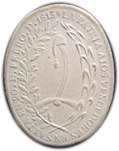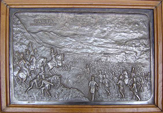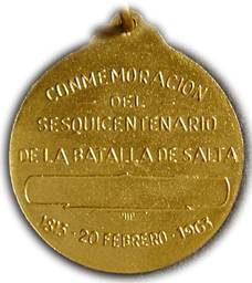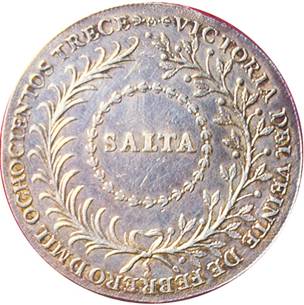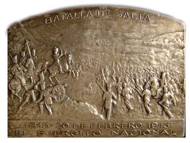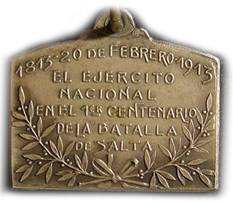 “BATALLA DE SALTA”, en banda inferior en dos líneas “1813 – 20 DE FEBRERO –