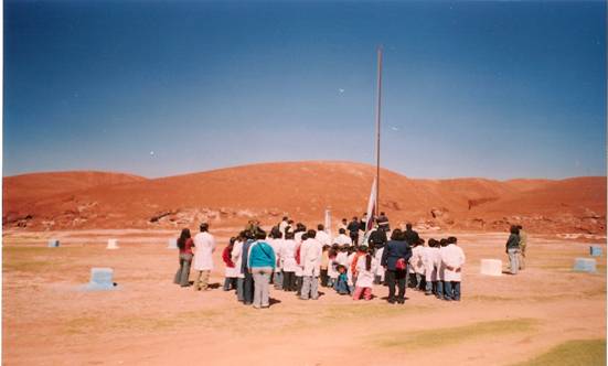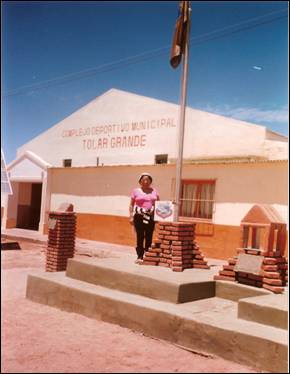 Hs: 08.25: Bello y radiante sol nos recibe en Tolar Grande. Todos los 8 de diciembre se realiza la fiesta patronal en honor a la Virgen del Valle. Antes de la ceremonia protocolar, se realiza la entrega las donaciones a la Sra. Directora: Rufina Alancay.