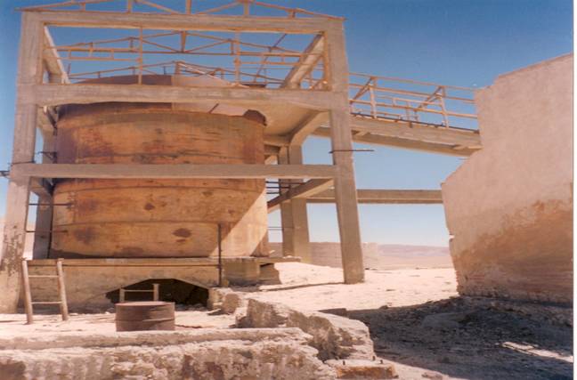 Tolva, autoclaves, y chimenea usadas en la planta azufrera.