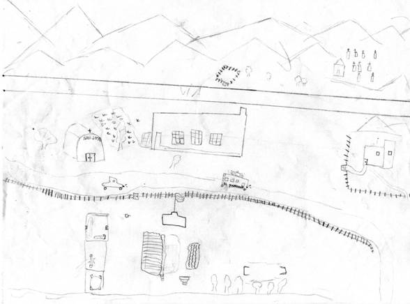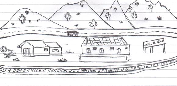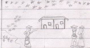 observa, además del edificio escolar, una capilla, casas dispersas de vecinos y