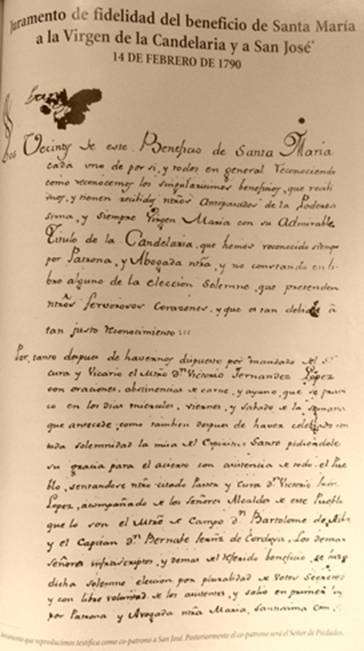 1746-Febrero- Don Ventura Cortés, Don Juan Cristóbal Retamoso, Don Julián López, D. Marcelo de Villagra, D. Joseph Villagra, D. Joseph Bernardo Villagra, Da. Juana Muñiz Cancinos, Da. Crisóstomo de los Ríos, Da. Josefa de Zeballos, Da. Antonia López, Da. Antonia Cancinos, Da. Elena López. Fdo Thejeda y Garay. Tgos. Julián y Fco Villagra (al Margen)”Se desistió de la Mayordomía que se seguía hasta la fiesta, Don Juan Cristóbal de Retamoso, y para que conste y aiga( sic) escarmiento no mandé asentar el desistimiento( letra del Cura Thejeda y Garay)”.