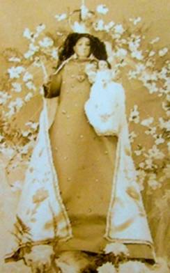 8º El mismo día-Inventario-“ Iglesia por acabar con dos umbraladas sin puertas, tabernáculo dorado y plateado, en el centro imagen de la candelaria con su niño, coronas de plata, manto raso, verde a flores con encaje de oro, zarcillos de girasoles, gargantilla de perlas finas y granates y dos cadenas de cristales y dos piedras azules de brillantes; arriba del nicho, cruz de palo dorada y plateada con dos rayos; más arriba retablo de nuestra Señora de la candelaria con su marco de palo claro y velo amarillo de sayasaia(sic); dos pares de manteles, uno con los deshilados usados y los otros viejos; casulla vieja; dos amitos nuevos y viejo; alba de bretaña nueva, cáliz de plata con su patena de paño verde, colorado y negro; dos purificadores usados; dos corporales nuevos con encaje y usado; dos palis viejas y usadas, misal viejo; un par de vinageras (sic) de plata ; incensario de plata; campanilla de cobre; cruz con Cristo pintado; sagrario de palo aforado de raso amarillo; manteles de Bretaña de encaje fino para el tabernáculo de Nuestra Señora; 9 cuadros grandes y uno chico del Rosario, de Santiago en su caballo blanco, santo Tomás de Aquino, Santa Catalina, Virgen y Mártir, Santa Lucía, San Antonio; 14 cuadritos y estampas de papel- altar colateral con Cristo Crucificado en cruz verde con túnica de Bretaña, velo negro de tafetán doble, viejo, un frontal de raso verde viejo, dos pares de manteles de Bretaña nuevos y viejos; un cielo de lienzo teñido arena angosta; dos chuses medianos nuevos y usados; púlpito de adobe con paño de lanilla viejo y mantel de Bretaña viejo; un par de candelabros azófar(sic); un … de raso colorado en su asta con su cruz de plata; no parecieron más bienes, se confiaron al dicho Mayordomo, dándoseles las gracias – Tucumán, Aguiar, y A. Muñiz Cancinos y Melchor Santuchos. Notario Pco de Visita y Santo Oficio.