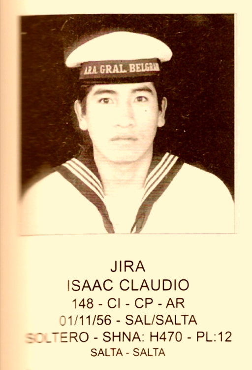 muerto en el Crucero General Belgrano, el cual el 2 de mayo de 1982 fue hundido por torpedos disparados por el submarino nuclear británico Conqueror.