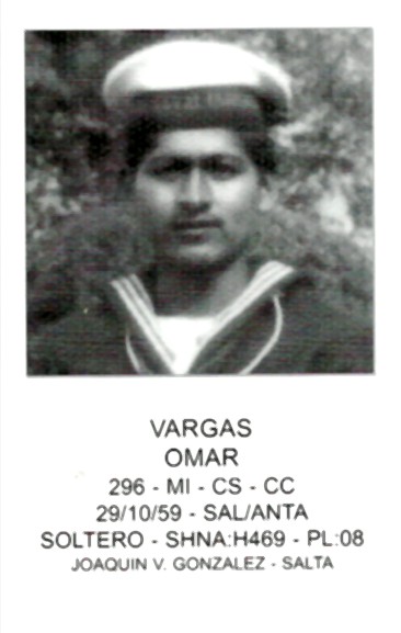 Nacido en Salta el 27 de febrero de 1963 – soltero - muerto en el Crucero General Belgrano, el cual el 2 de mayo de 1982 fue hundido por torpedos disparados por el submarino nuclear británico Conqueror.