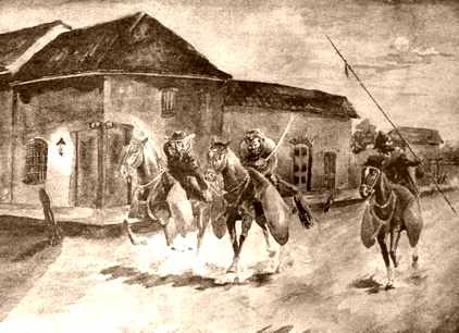 Uno de los colaboradores del jefe patriota, que ha estado reunido en su casa y atraviesa la plaza, se topa con una de has patrullas del “Barbarucho2, y es muerto de un disparo. Güemes escucha la detonación y sale solo a la oscuridad cerrada de la noche, convencido de que se trata de algún disturbio aislado, provocado por la anarquía del campo patriota, sin imaginar que los realistas se habían desplegado ya por toda la ciudad.