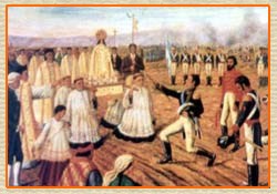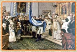 El 31 de enero de 1813 se instaló en Bs. As. la Asamblea Gral. Constituyente con la intención de constituir el nuevo Estado Nacional a través de la Declaración Formal de Independencia y la Sanción de una Constitución Nacional. Estos propósitos no fueron cumplidos porque el panorama bélico, aunque mejoraba, no era definitivo, pero se aprobaron nuevos símbolos entre los cuales estaba la Bandera vetada por el gobierno anterior. Aprovechando la situación, Belgrano hizo jurar fidelidad y obediencia a la Asamblea frente a la Bandera, el 13 de febrero a orillas del Río Pasaje, que desde entonces también se conoce como Juramento.