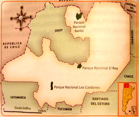 Parque Nacional El Rey: En el Departamento de Anta de la Provincia de Salta, a unos 80 km., en linea recta al este de la capital provincial, se encuentra el Parque Nacional El Rey.