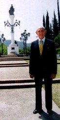 El ex cónsul de España también dejó estampada sus huellas en la tierra de sus padres, por ejemplo: en 1972 se entrevistó con el general Francisco Franco en el Palacio El Prado (Madrid); más tarde con el Duque de Cádiz Don Alfonso de Borbón, en aquel entonces presidente del Instituto de Cultura Hispánica de Madrid de quien obtuvo la donación de una estatua de la reina castellana; visitó en Madrigal de las Altas Torres el Palacio de Juan II, hoy convertido en Convento de las Monjas Agustinas lugar donde extrajo tierra del piso de la alcoba donde nació Isabel la Católico para depositarla en un cofre a los pie de Nuestra Señora del Pilar.