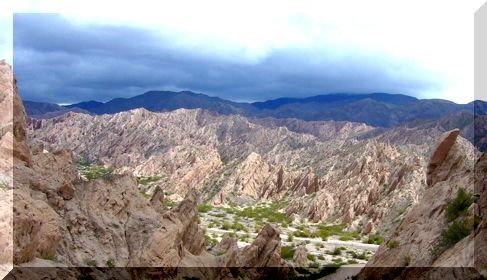 Las formaciones mas llamativas son los Pasos del Ventisquero, un verdadero glaciar petrificado de puntas aguas, y la Quebrada de la Flecha.