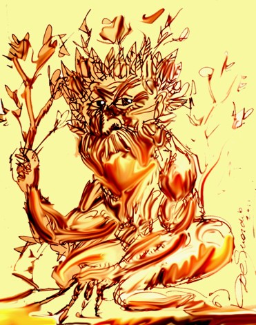Protege a los árboles de la voracidad humana. Sus gritos remedan el golpe seco del hacha, y suele atraer con ellos a los hacheros y meleros que se internan en el monte. Cruza en vertiginosa carrera las espesuras en que habita, y los perros que se atreven a perseguirlo no regresan.