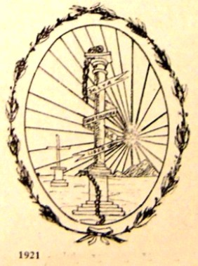 b) Ocupando el centro de la elipse una Estrella de Plata con seis picos.