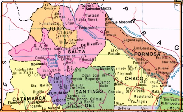 Rodea por completo, como si fuera una herradura, a la provincia de Jujuy, siendo al igual que Corrientes, la única provincia del país que tiene fronteras internacionales con tres países a la vez : Chile, Bolivia y Paraguay.