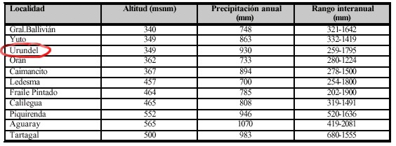 Tambien esta franja altitudinal pueda posiblemente sufrir desplazamientos espaciales de algunas especies arbóreas siguiendo los ciclos climáticos secos - húmedos. Muestras de esta variabilidad pueden ser observadas a continuación, donde se resume la información sobre precipitación en sitios de pedemonte de esta región.