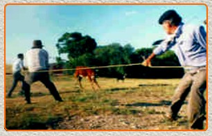 Cuando ello sucede; es todo un acontecimiento y el dueño de los animales organiza una gran fiesta muy provista de carne y de vino, a la que asisten los organizadores, parientes e invitados.