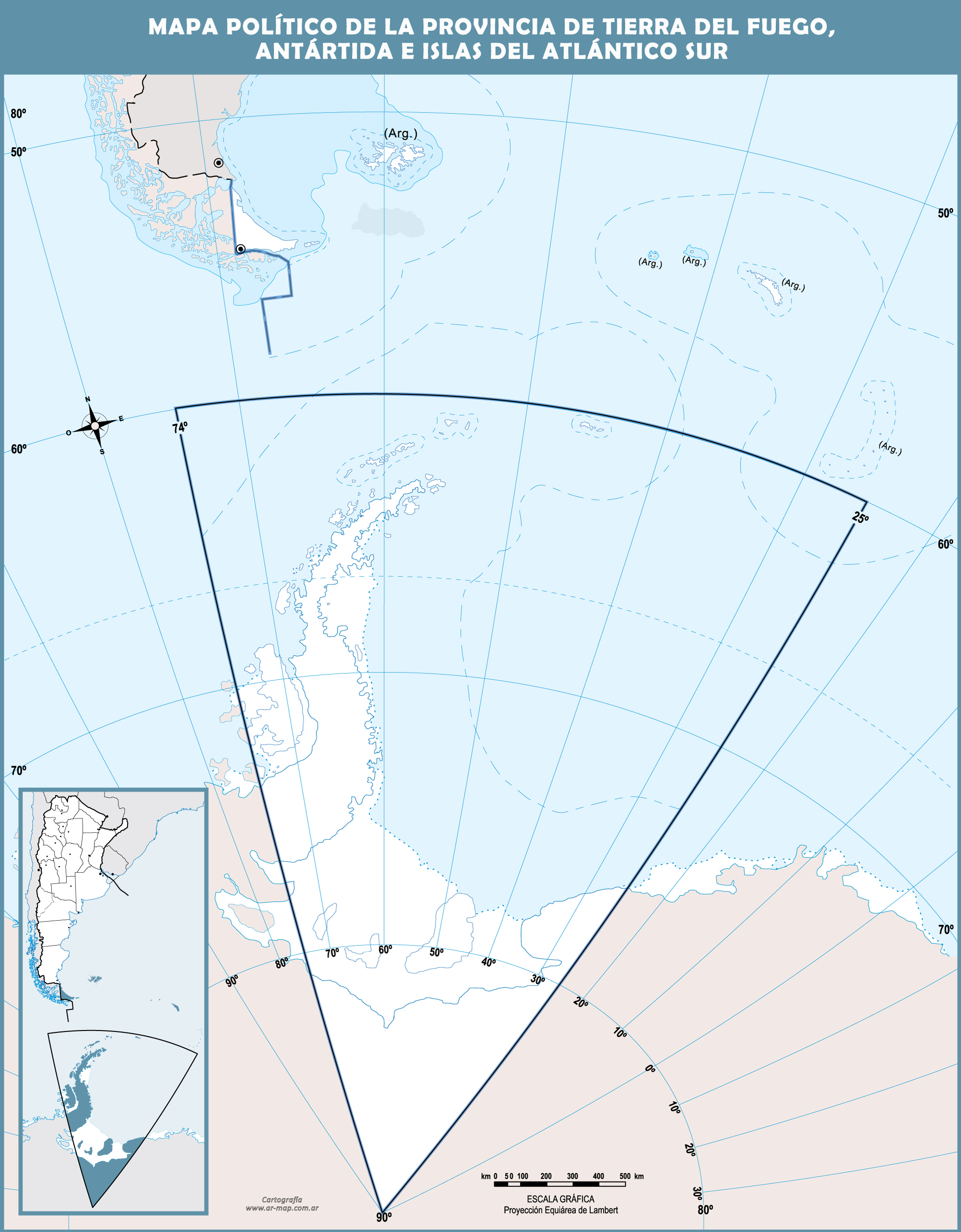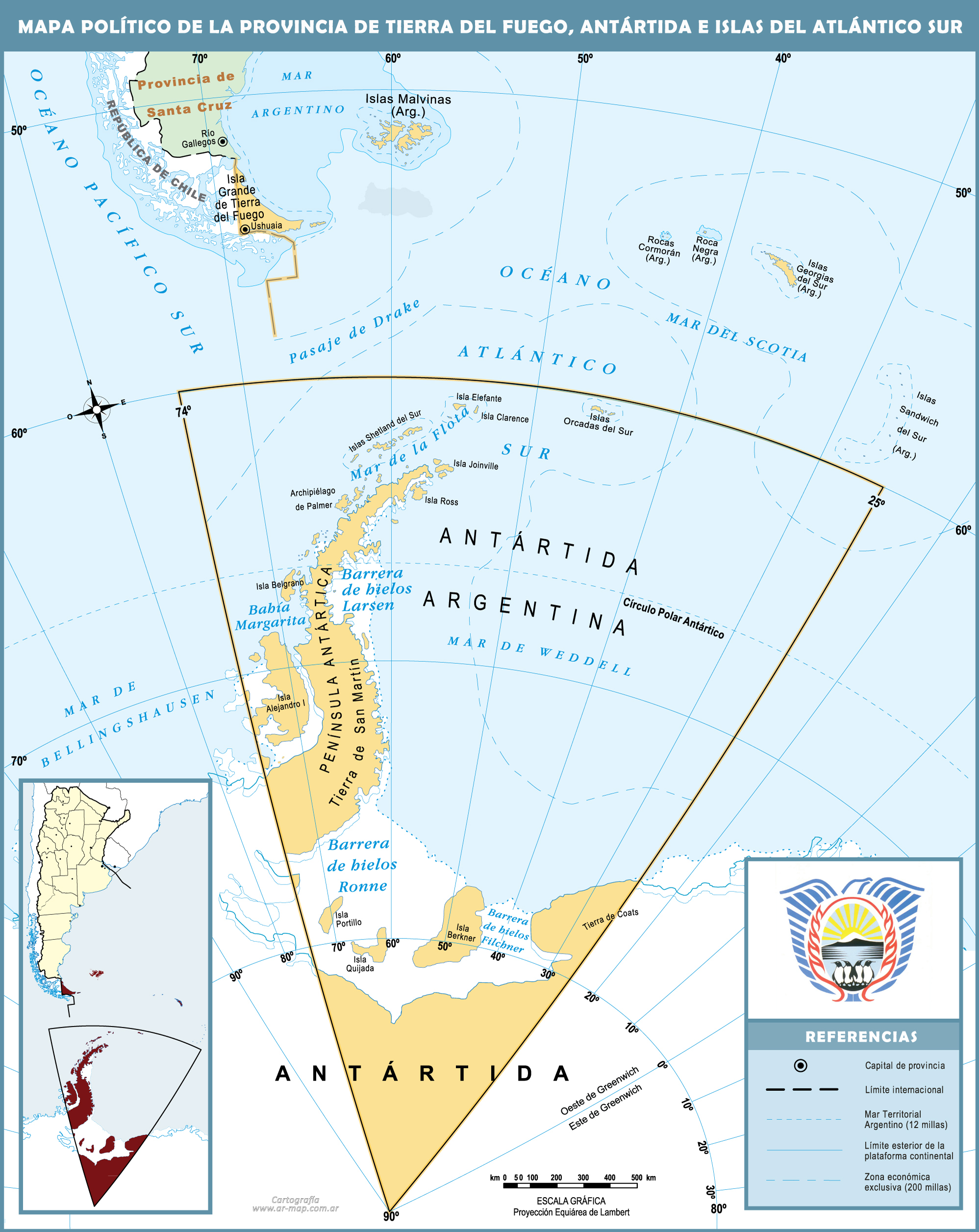 Mapas de Tierra del Fuego, Antártida, e Islas del Atlántico Sur